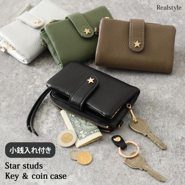 スタースタッズ がま口 二つ折り財布 レディース コンパクト かわいい 小さい L字ファスナー 小さい財布 ミニ財布 小銭入れ コインケース カードケース カード入れ 札入れ 小さめ おしゃれ キーリング メール便 bdc132