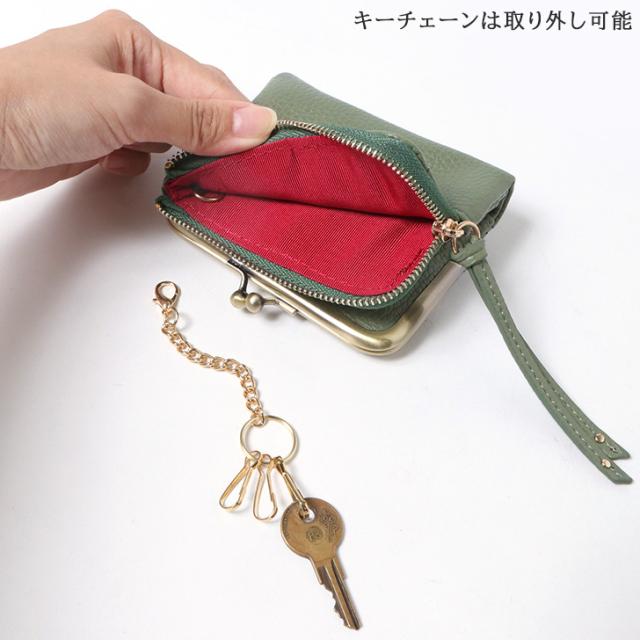 ■仕様:【外側】がま口ポケット×1、ファスナーポケット×1、カードポケット×1 【内側】札入れ×1、カードポケット×9、Dカン×1、キーリング×1、キーフック×3