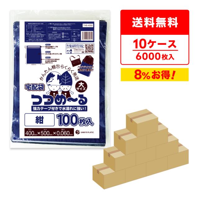 【まとめて10ケース】THB-4050-10 宅配袋 大サイズ ヨコ400xタテ500(マチ付)+フタ40x0.060mm厚 紺 100枚x6冊x10箱 送料無料