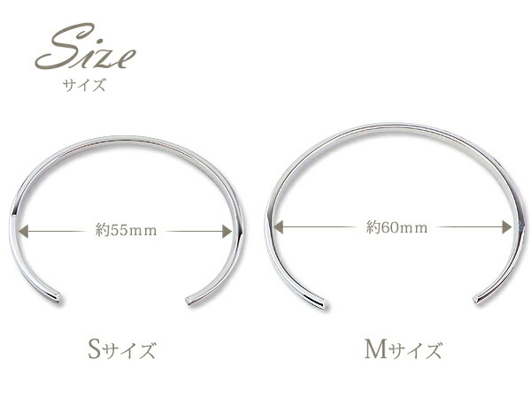 | サイズ | レディース(Sサイズ):内径 約55mm、幅 約2.5〜5mm、厚み 約2.2mm メンズ(Mサイズ):内径 約60mm、幅 約2.5〜5mm、厚み 約2.2mm |