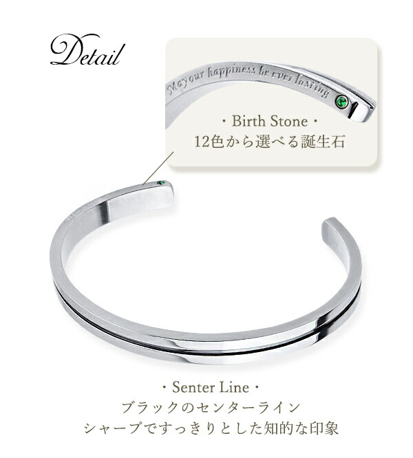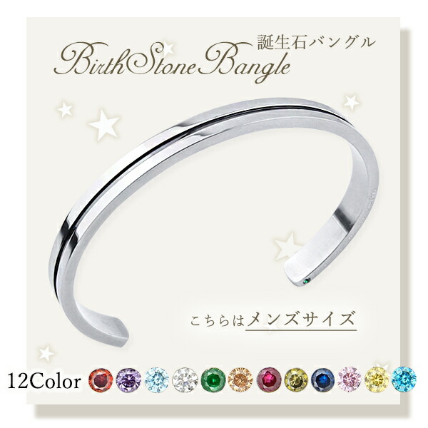 バングル 誕生石 センターライン 刻印 名入れ メッセージ 金属アレルギー バースストーン ピンク オープンバングル C型 ジルコニア ブレス ブレスレット メンズ 男性 カップル プチギフト プレゼント ギフト