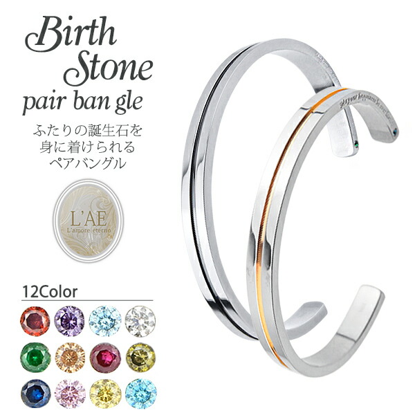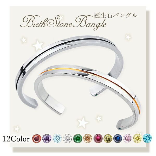 ペアバングル バングル 誕生石 センターライン 刻印 名入れ メッセージ 金属アレルギー バースストーン ピンク ブラック 黒 オープンバングル C型 ジルコニア メンズ レディース 男性 女性 カップル 2個セット ラッピング プレゼント ギフト