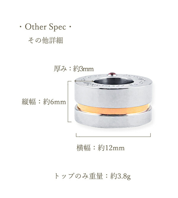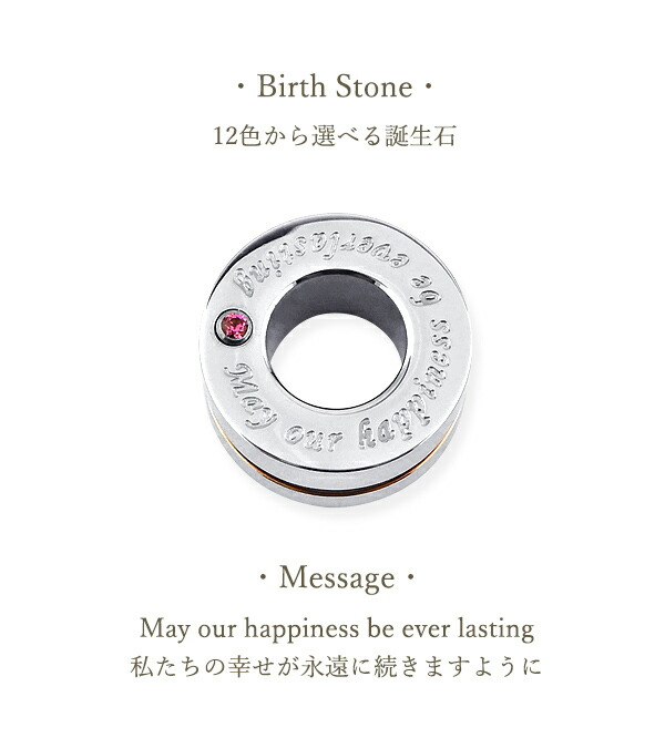 | 誕生石 | 天然石ではありません。ジルコニアです。 1月 ガーネット (GARNET CZ) 2月 アメシスト (AMETHYST CZ) 3月 アクアマリン (AQUAMARINE CZ) 4月 クリスタル (CRYSTAL CZ) 5月 エメラルド (EMERALD CZ) 6月 シトリン (CITRINE CZ) 7月 ルビー (RUBY CZ) 8月 ペリドット (PERIDOT CZ) 9月 サファイア (SAPPHIRE CZ) 10月 ローズクォーツ (ROSE QUARTZ CZ) 11月 トパーズ (TOPAZ CZ) 12月 ターコイズ (TURQUOISE CZ) |
