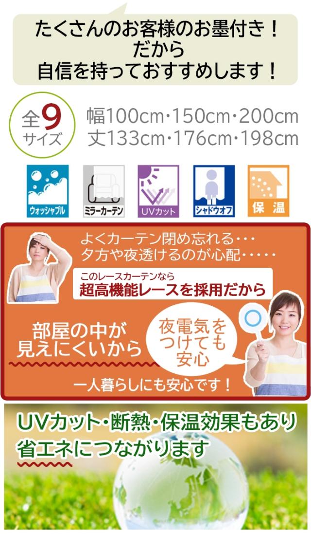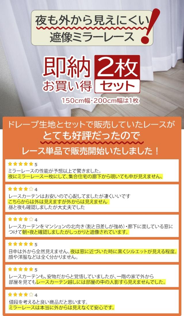 レビュー高評価♪昼も夜も外から見えにくい遮像ミラーレースカーテン