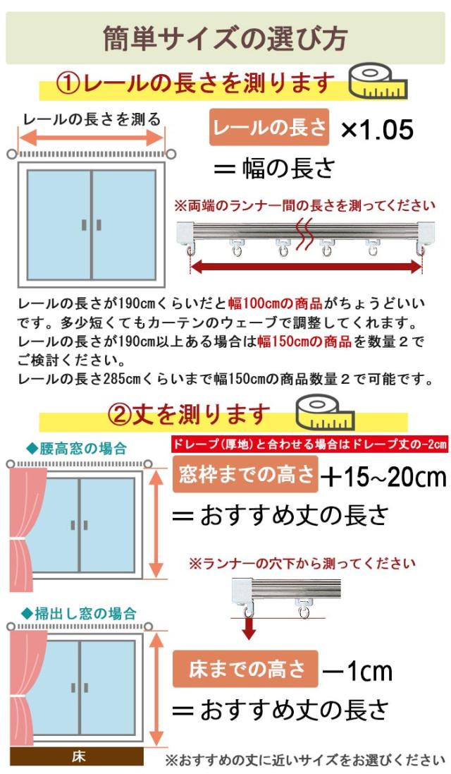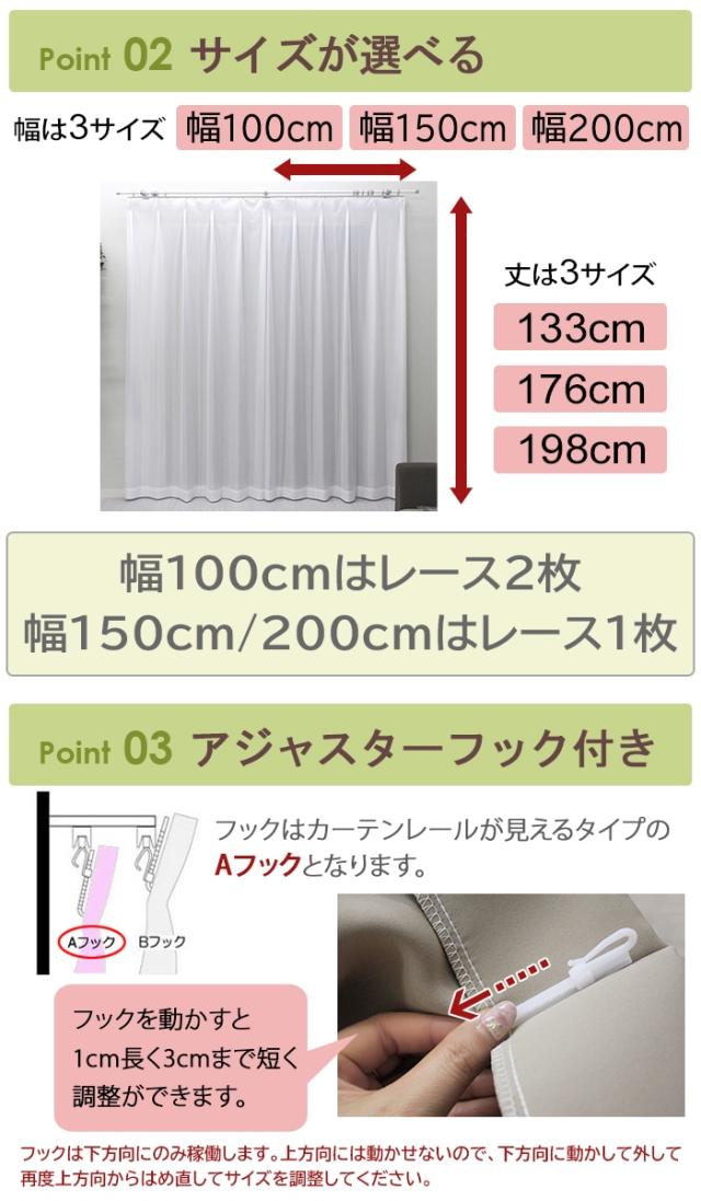 ◆サイズ:幅100cm×丈133cm(2枚組)・幅100cm×丈176cm(2枚組)・幅100cm×丈198cm(2枚組)・幅150cm×丈133cm(1枚)・幅150cm×丈176cm(1枚)・幅150cm×丈198cm(1枚)・幅200cm×丈133cm(1枚)・幅200cm×丈176cm(1枚)・幅200cm×丈198cm(1枚)