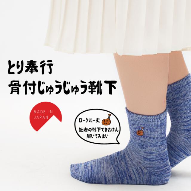 日本製 とり奉行 骨付きじゅうじゅう靴下 23〜25cm フリーサイズ パイル 丈夫 ロークルーソックス 刺繍 ソックス socks fs-5 LegStyle