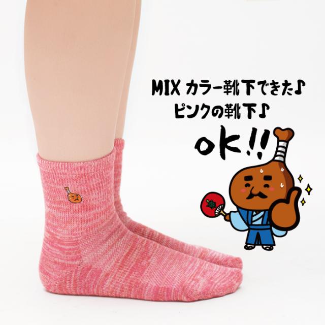 丸亀市公認キャラクター 「とり奉行 骨付きじゅうじゅう」が靴下になりました! 素敵な刺繍のワンポイントに履きやすいMIXベース! つぶらな瞳で「うまげにできたわ。」と言いながらあなたを待っています。 |
