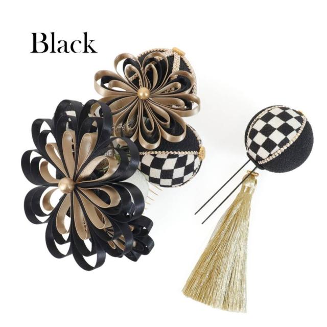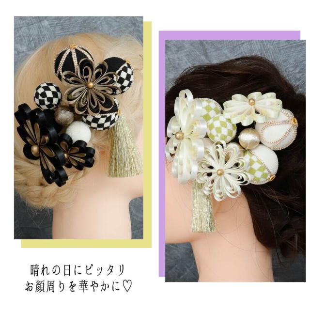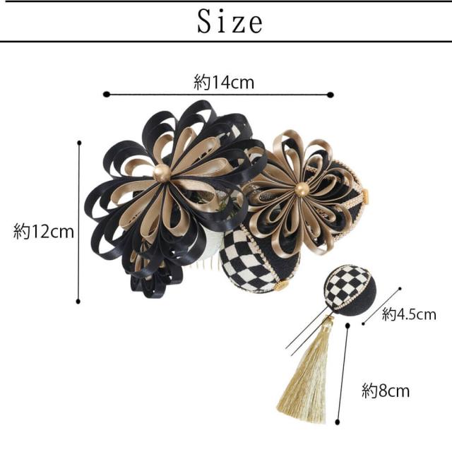 花の部分 (大) 縦:12cm×横:14cm×高さ:7cm(コーム部分除く)毬飾り (小) 縦:4.5cm×横:4.5cm×高さ:4.5cm(Uピン部分除く)