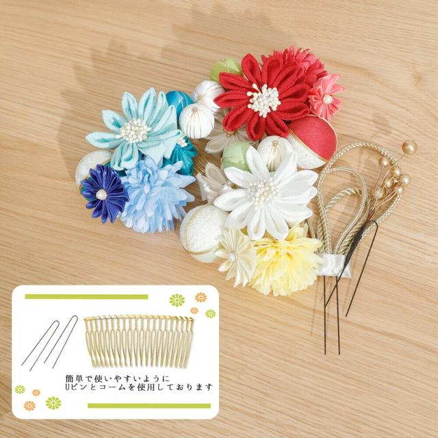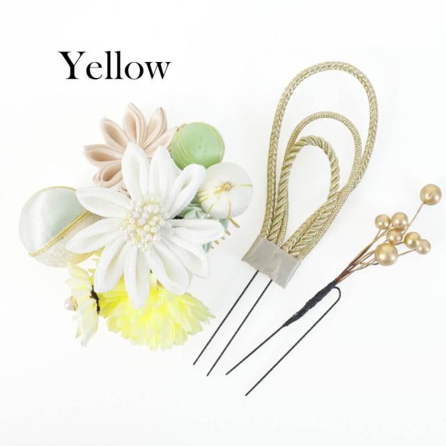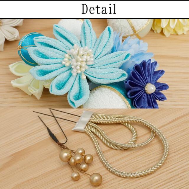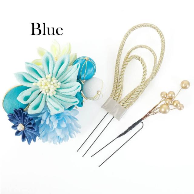 成人式 卒業式 つまみ細工髪飾り 3点セット ぶら飾り 組紐