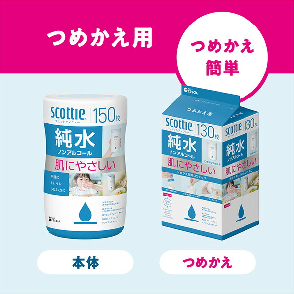 | 日本製紙クレシア スコッティ ウェットティッシュ 純水 ノンアルコール つめかえ用 130枚×21パック 【ケース販売】 |