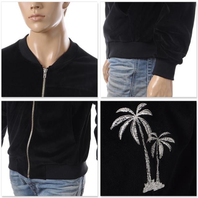 スカジャンのディテールを、ノーカラーのジップアップスウェットとして表現したデザイン性の高いアイテム。フロントのヤシの木の刺繍と、落ち着いた色合いの上質で滑らかなベロアがシックな印象。季節の変わり目にはライトアウターとして、ヘビーアウターの出番になってからも、インナーの上への一枚として活躍するシーズンを通して長く着まわせる万能アイテム!同系のスウェットパンツとのセットアップもオススメです!