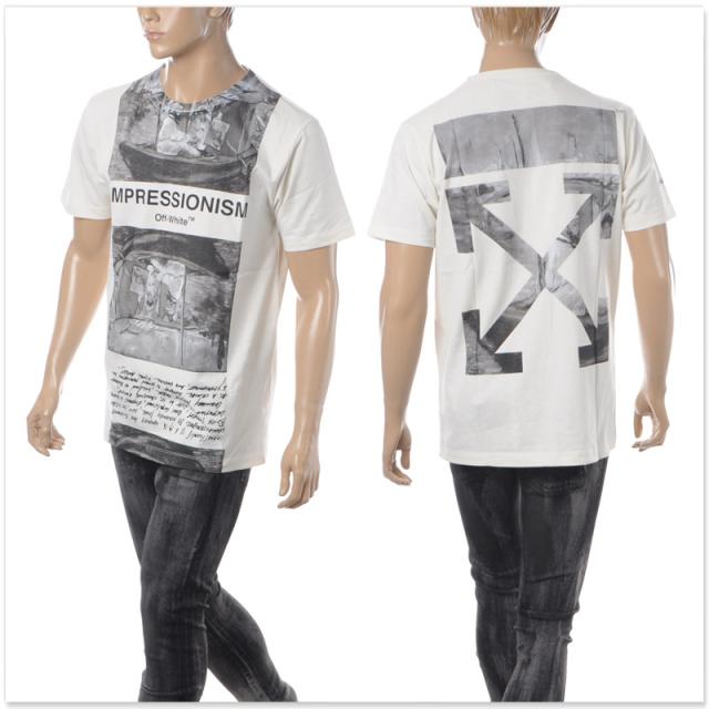 オフホワイト OFF-WHITE クルーネックTシャツ 半袖 メンズ NEWSPAPER S/S SLIM TEE OMAA027R191850130210 オフホワイト