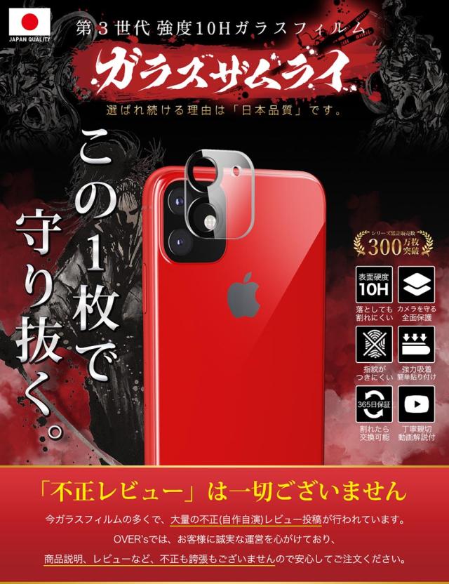 商品名:iPhone11 カメラフィルム ガラスフィルム 全面保護 レンズカバー 10H ガラスザムライ アイフォン iPhone 11 保護フィルム OVER`s オーバーズ