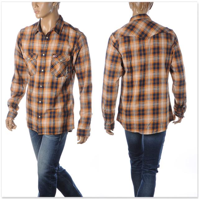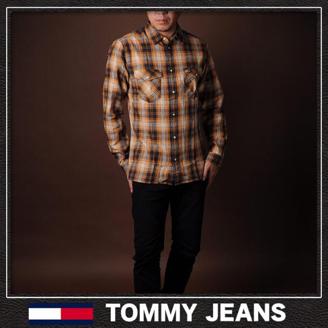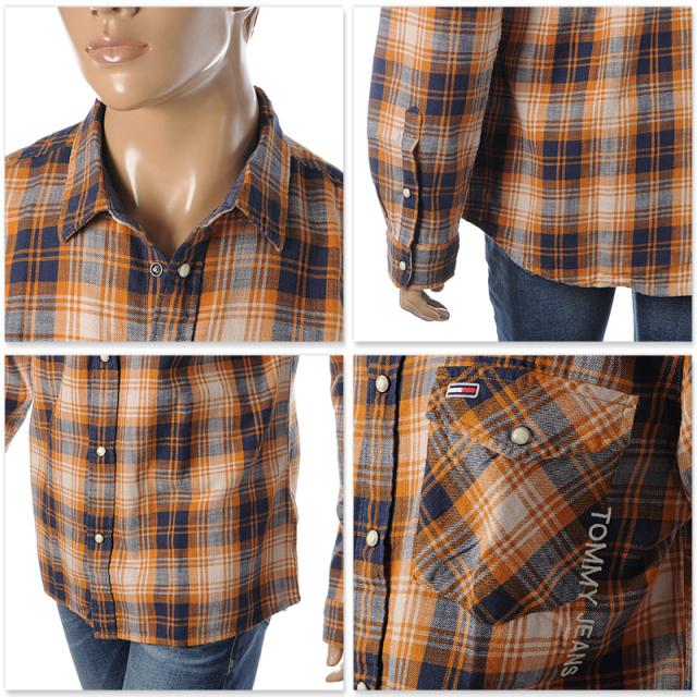トミージーンズ TOMMY JEANS ウェスタンチェックシャツ 長袖 メンズ DM0DM08396 オレンジ