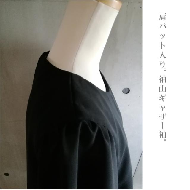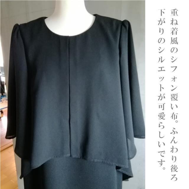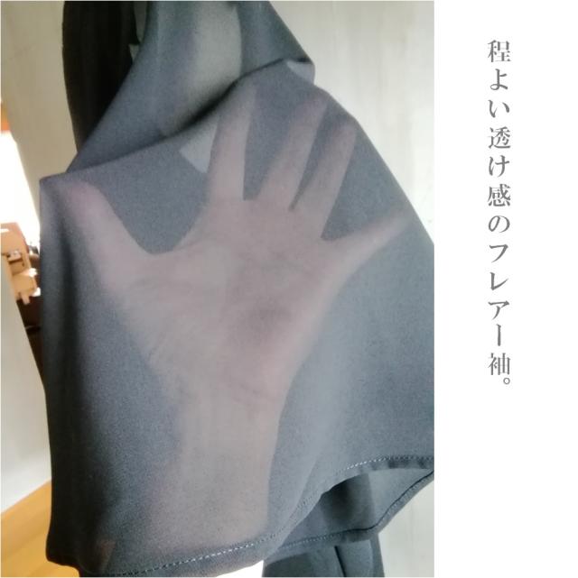 ブラックフォーマル用の中肉素材を身頃に、袖はブラックフォーマル用の程よい透け感、清涼感のあるシフォンを使用しました。