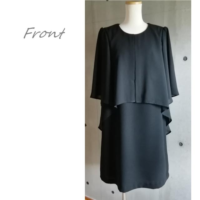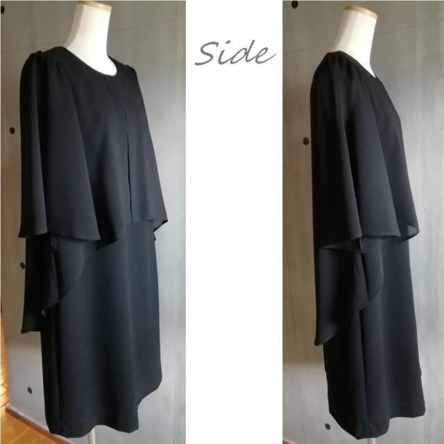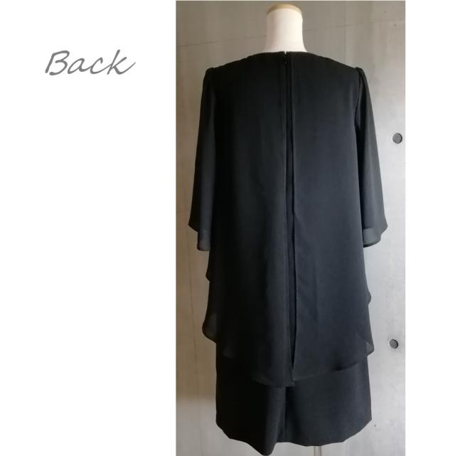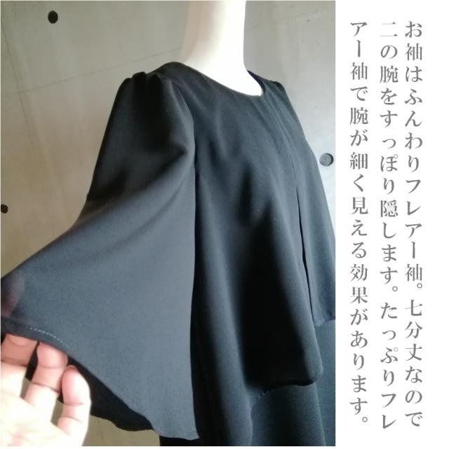 喪服 透け感フレアー袖 レイヤードフレアーワンピース アンサンブル風 ひざ下丈 礼服 ブラックフォーマル 123800-2