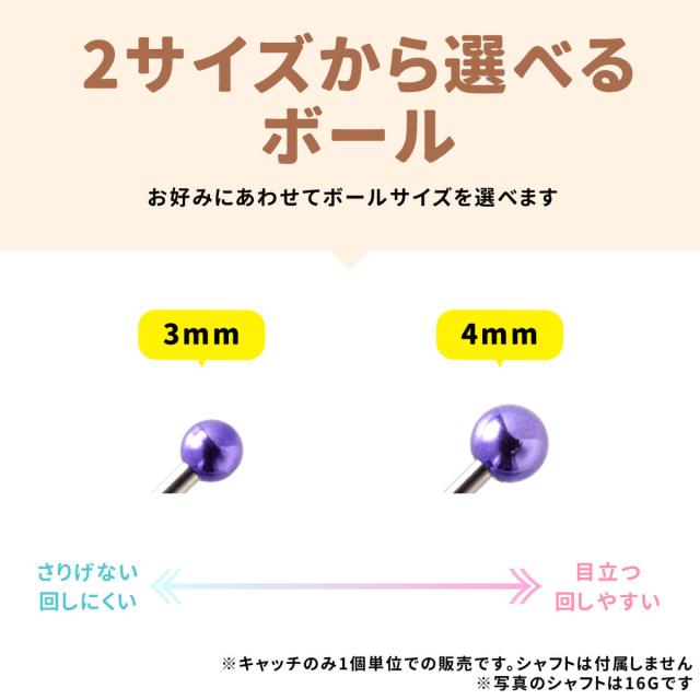 太さ12G,14G,16G,18G ボールサイズ3mm?4mmのキャッチ パーツです。