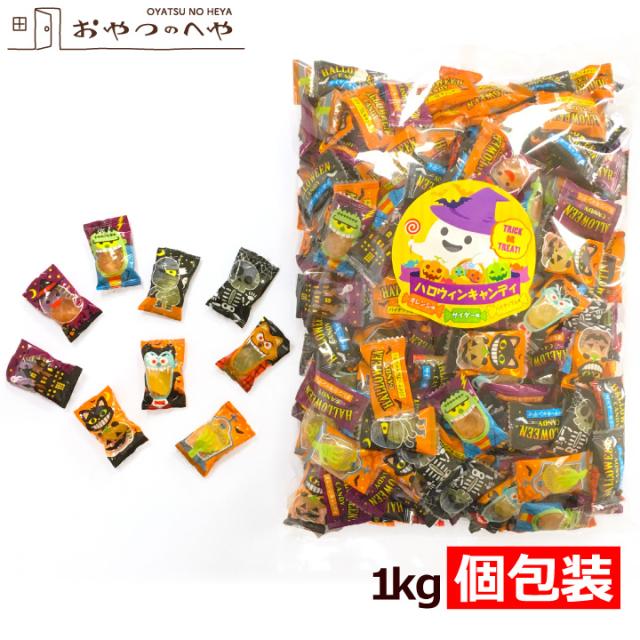 ハロウィン キャンディ 1kg(個包装 約230個) 3種の味 オレンジ サイダー パイナップル 飴 あめ キャンデー