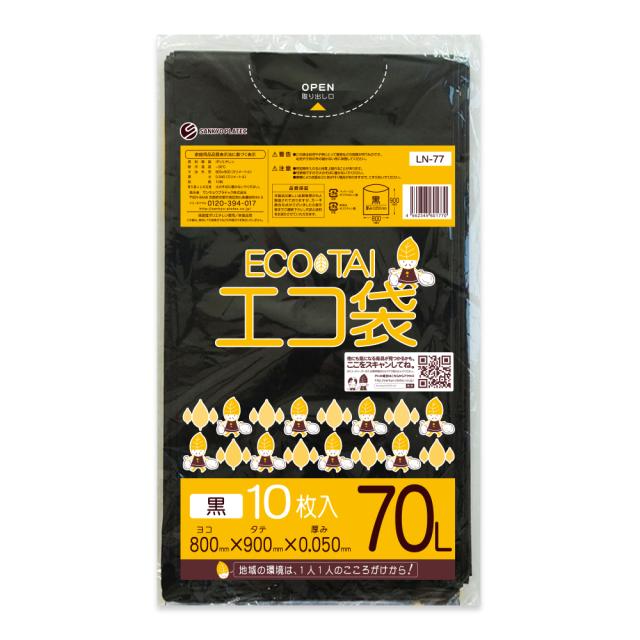 【バラ販売】LN-77bara ポリ袋 70リットル 0.050mm厚 黒 10枚 / ゴミ袋 ごみ袋