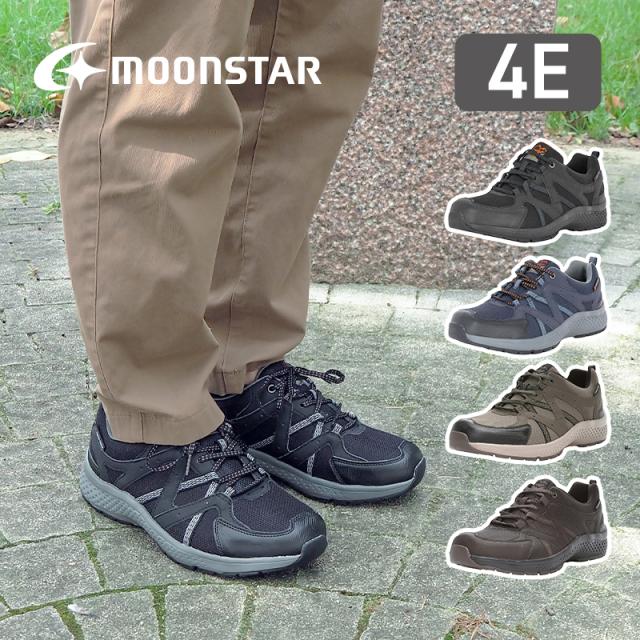 週間百選No.72:送料無料 ムーンスター メンズ ウォーキング スニーカー SPLT M195 ブラック ネイビー ブラック/オレンジ モスグリーン ブラウン 幅広4E 防水 抗菌防臭 シューズ 靴 通勤 通学 _100sen