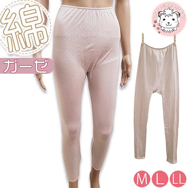 9分丈 ボトム スパッツ レギンス レディース プレミアムガーゼ 綿仕立て ガーゼインナー スラックス下 M/L/LL