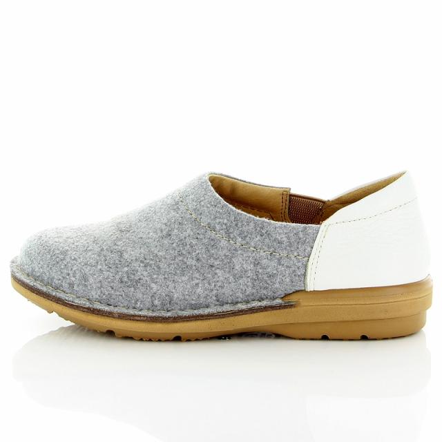 ムーンスター「Slow Factory」は1956年から革靴生産を担ってきた佐賀の工場でゆっくり時間をかけ丁寧に作った靴です。甲の部分はやわらかくフィットし屈曲性が良いステッチダウン製法、かかと周りはしっかりホールドするために革を内側に包み込むつり込み式になっています。ソールは足なりの形に立体的にフィットすPUダイレクト製法です。ソールそのものがフットベッドの役割をはたすので足にやさしくここち良いつくりです。甲にペットボトル再生フェルト材を使用しています。フェルトのやさしく温かみのある素材感がリラックススタイルにピッタリな一足です。内側ゴア付きで履きやすいシンプルなスリッポンタイプです。ヒールの高さは3cmで、重量は23.0cmで片足約230gです。【ベステック(R)ソール】ウレタンの劣化しやすい弱点を大きく改善した素材で、軽量性、弾力性、防滑性に富んだソールです。【足なり設計】足の特性に合わせて足裏にフィットするため、負担がかかりにくい設計です。