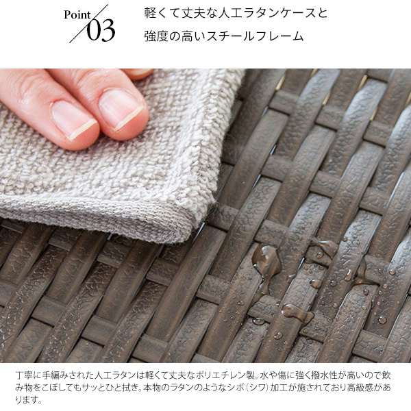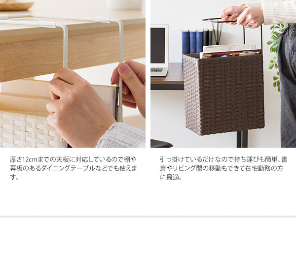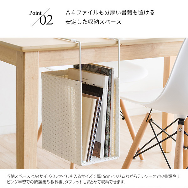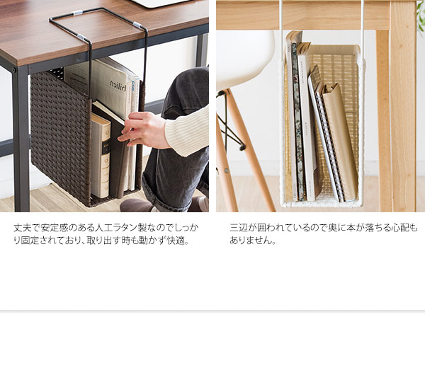 安定感があり丈夫な人工ラタン製で書類や教科書をしっかり支えます。気軽に持ち運びできるので書斎からリビングへの移動などもラクラク。