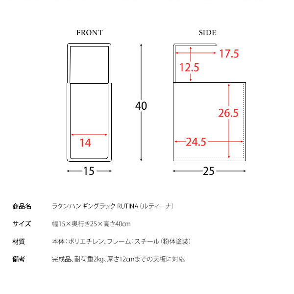 幅15×奥行き25×高さ40cm