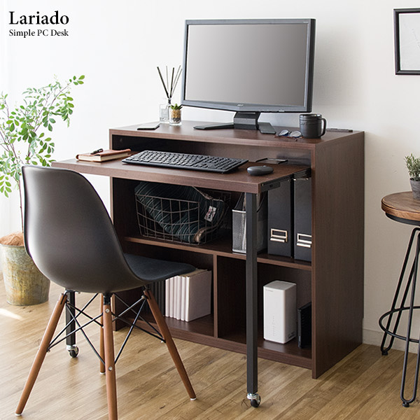 幅90cmのコンセント付きの天板とキーボードやノートが置いて出し入れできるスライダー、雑誌やファイルも入る足元収納が付いた便利なパソコンデスク『Lariado(ラリアード)』。