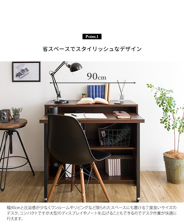 スライダー + 足元収納付き パソコンデスク Lariado(ラリアード) 幅90cm デスク PCデスク テーブルは収納可能 机 在宅ワーク 在宅勤務 テ