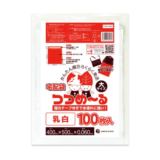 【バラ販売】THW-4050bara 宅配袋 大サイズ ヨコ400xタテ500(マチ付)+フタ40x0.060mm厚 乳白 100枚