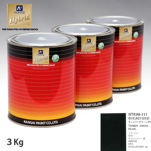 関西ペイント ハイブリッド 調色 ミツビシ G13/AC11213 ティンバーグリーン(P) 3kg(希釈済)