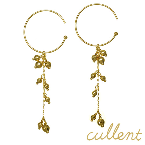 ボールパーツとミラーボールのカット面が、揺れる度に煌めきゴールドの美しい輝きを奏でます。縦のラインは顔周りをすっきりと見せてくれる効果も。シンプルなのでさまざまな装いにコーディネートしやすく、優雅に揺れてエレガントな雰囲気をプラスしてくれます。