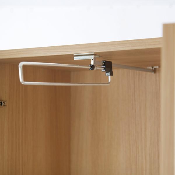 上部には、飛び出し式のスライドハンガーが付いています。省スペースを実現し、衣服の取り出しがしやすく便利です。