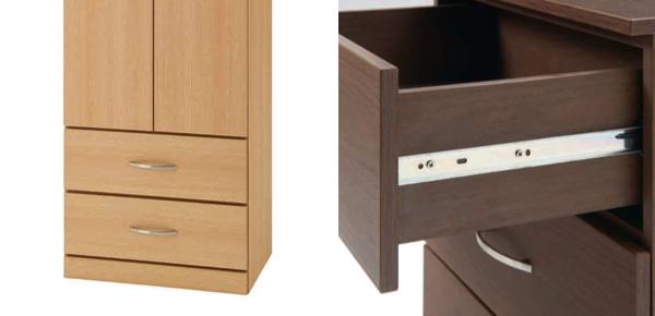 下部には、タオルや下着などの収納にも最適な引出しが2杯あります。また、引出しはスライドレール仕様で、楽に引き出すことができます。