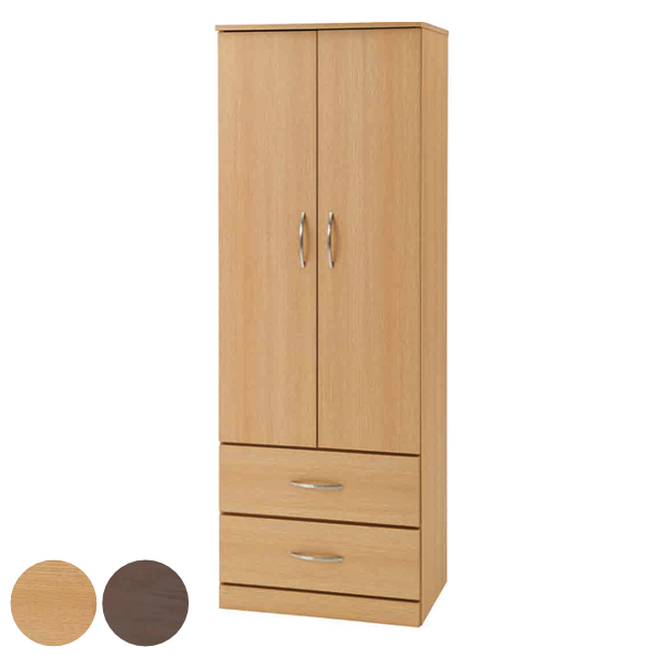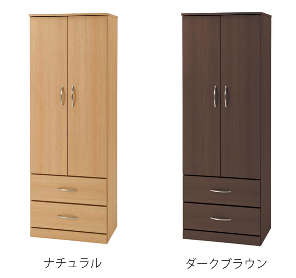 ワードローブ 引出し付 壁面収納 木目調 シンプルデザイン 幅60cm ( 居室収納 収納チェスト たんす タンス 収納 スライドハンガー 完成品 居室用 リビング収納 ナチュラル ダークブラウン おしゃれ シンプル )
