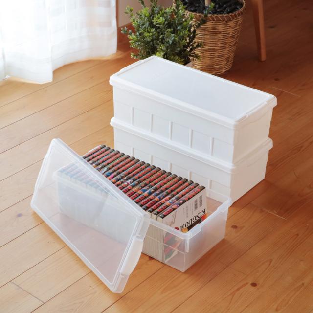場所を取る漫画本をすっきり収納できるポリプロピレン製のブックケースです。BIGコミック本(B6サイズ・厚さ1.9cm)は約22冊、普通コミック本(厚さ1.5cm)は約28冊収納できます。フタ付きなのでホコリや湿気、カビからも守り大切な収納物をキレイに保管できます。