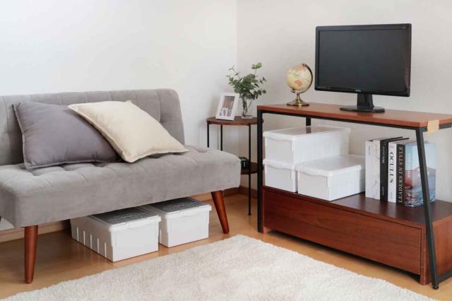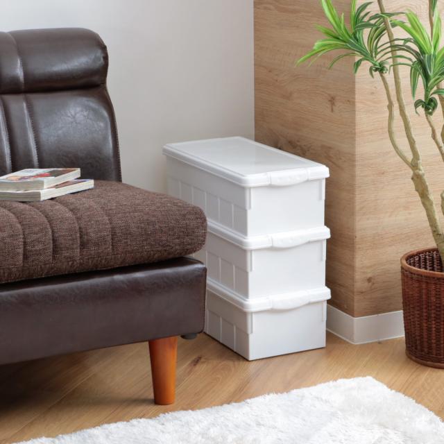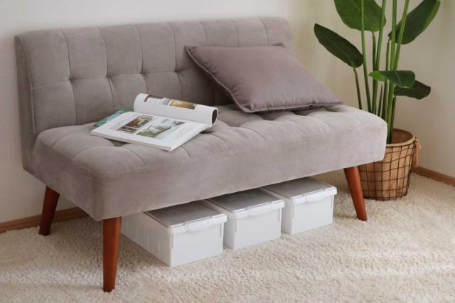 ベッドやソファ下のスペースに収納すれば、デッドスペースを有効活用できます。また、クローゼットや家具とのすき間にもスッキリと収納することができます。