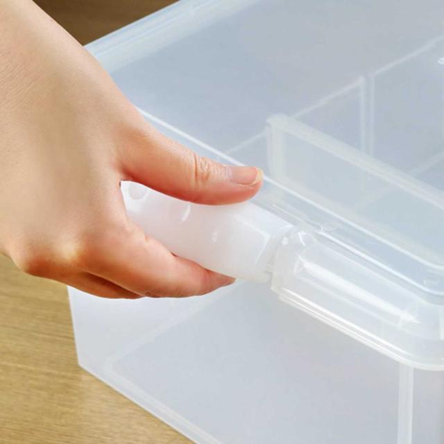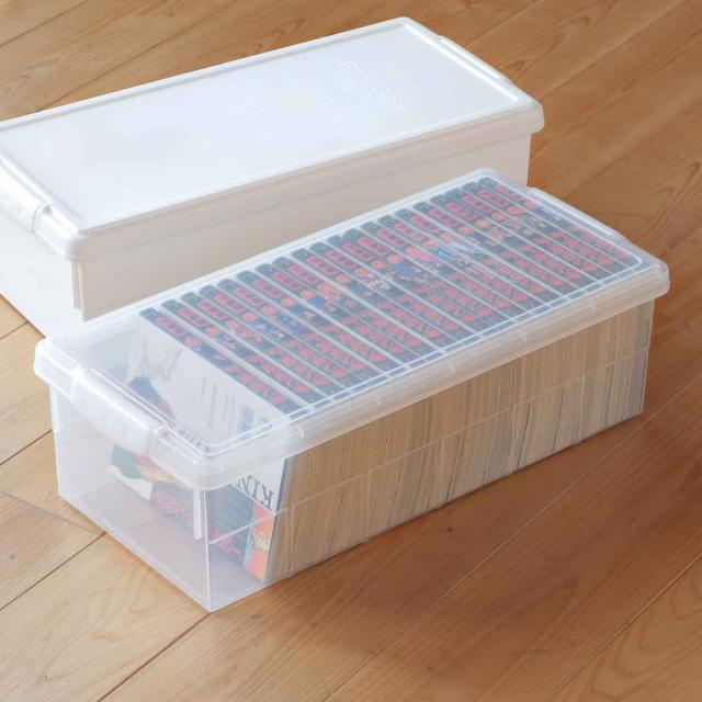 外側からでも中身が確認しやすいクリアカラーです。フタをしていても背表紙が見えるので、どこに何が入っているか一目でわかり探しやすいです。
