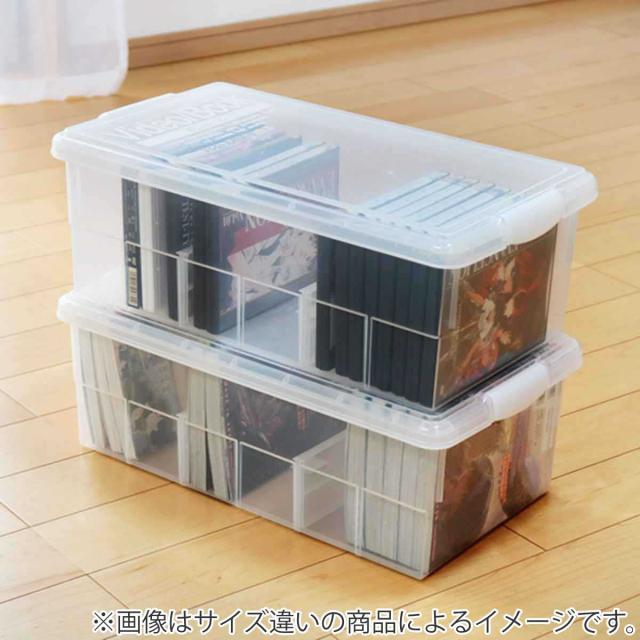 収納ボックス 幅21.5×奥行45.5×高さ13.8cm ブックケース ( コミック 漫画 メディア収納 マンガ 本 収納 ボックス ケース プラスチック フタ付き 日本製 積み重ね 収納ケース 新書 まんが B6 保管 コレクション 整理 仕切り付き )