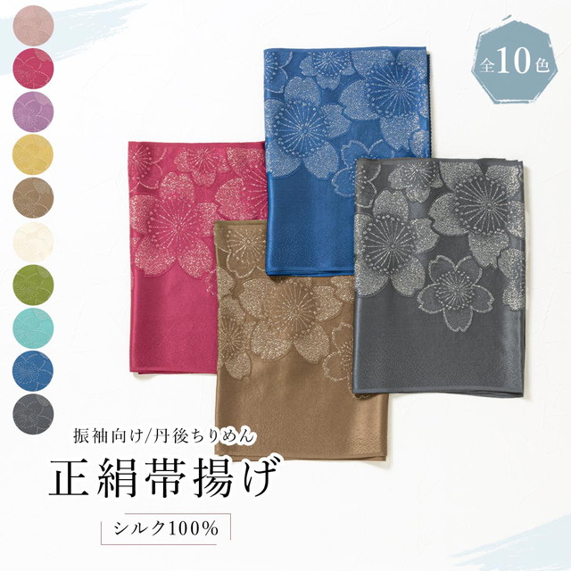 帯揚げ 振袖 振袖用帯揚げ 成人式 盛装 金通し 丹後ちりめん 縮緬 正絹 ピンク 赤 紫 緑 青 灰色 桜 さくら 花 ラメ 帯あげ 和装小物 日本製 メール便 送料無料