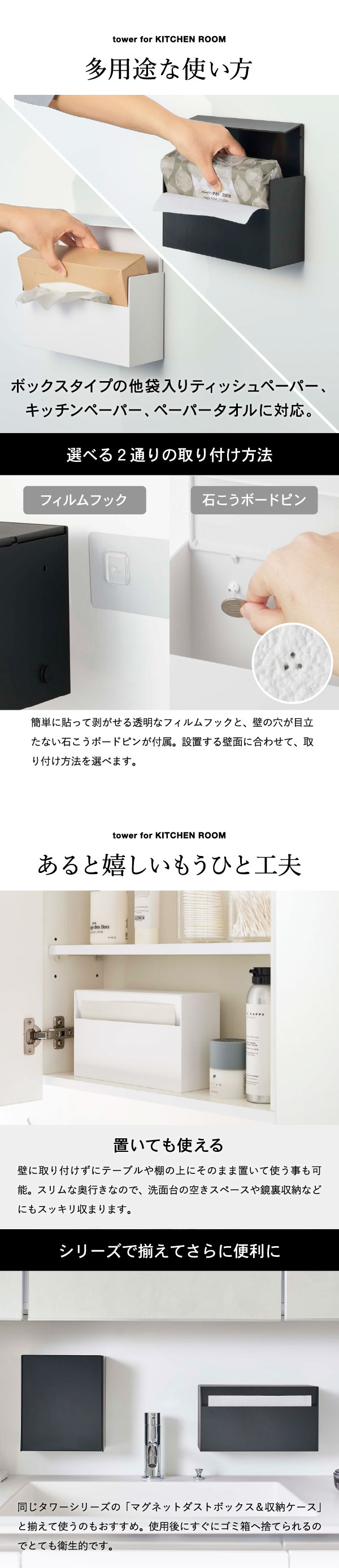 tower 山崎実業 送料無料 タワー ウォールペーパーホルダー ホワイト ブラック 5441 5442 ティッシュケース キッチンペーパーホルダー ペーパータオルホルダー ティッシュボックス 壁面 誕生日プレゼント