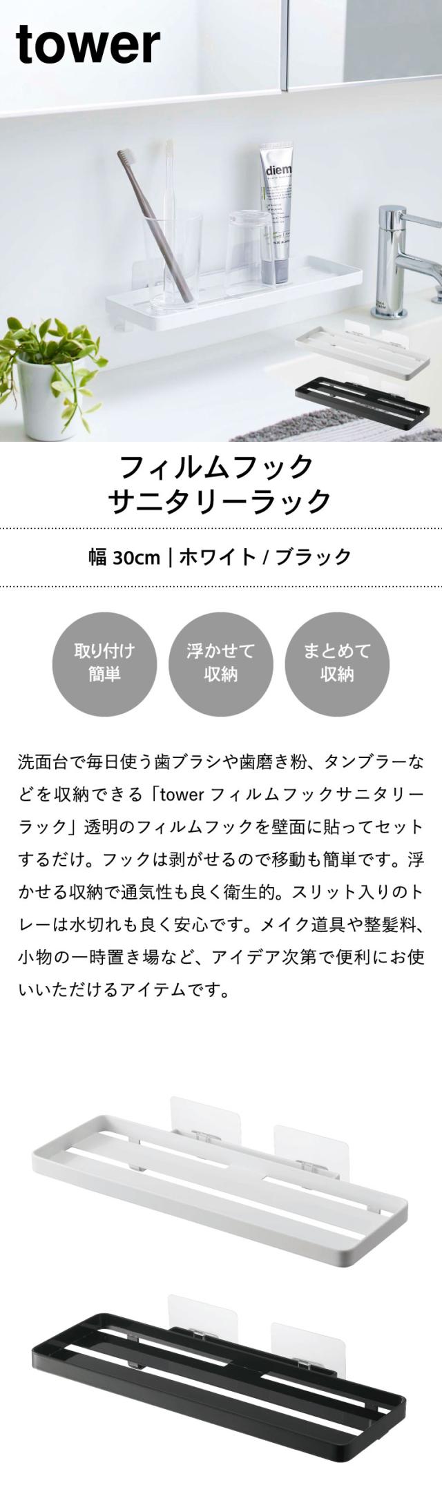 tower 山崎実業 送料無料 タワー フィルムフック サニタリーラック ホワイト ブラック 5397 5398 洗面台 トレー ラック 棚 浮かせる収納 洗面所 洗面収納 風呂 バスルーム 浴室収納 タワーシリーズ 誕生日プレゼント