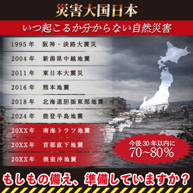 - 災害時用に購入。家族が多いので2個購入したのですがお店の手違いで1個だけ送られてきたので問い合わせた所、その日のうちに不足分を送ってくれました。対応が早く誠実なお店だと思いました。 商品に関してはコンパクトで丈夫な箱に入ってるので保管しやすいと思います。