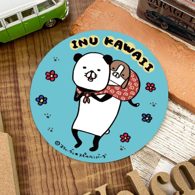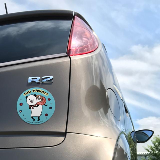パンダと犬 描き下ろし!車マグネットステッカー 丸型15cm INU KAWAII パンダと梅吉 おんぶ ゆうパケット対応210円〜
