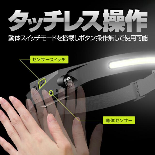 COB-LED/XPE-LED USB充電ヘッドライト 高輝度350LM 10W 軽量小型 夜間作業 ウォーキング 犬の散歩などに COBUHX200