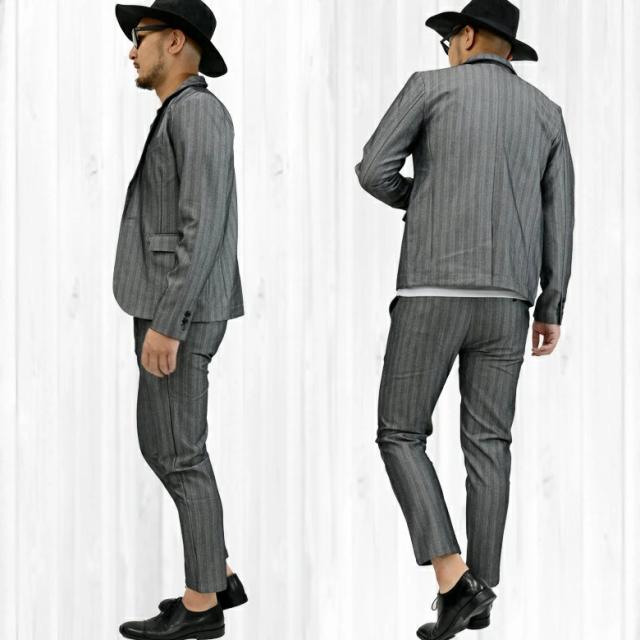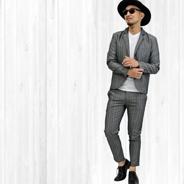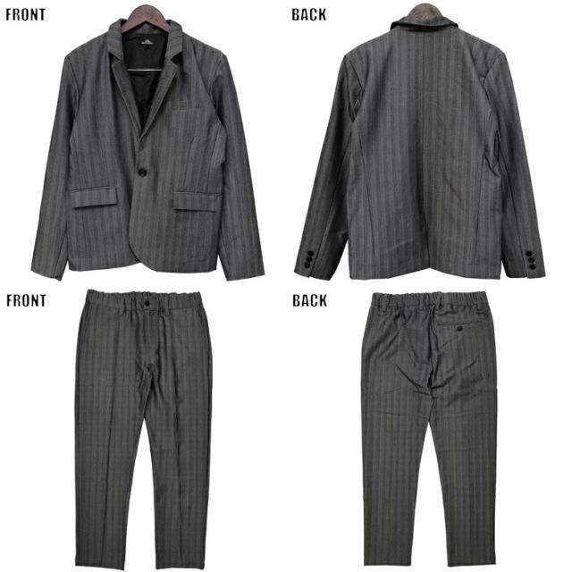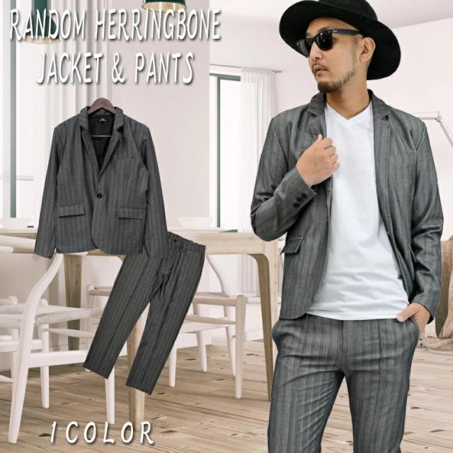 【閉店セール】ランダムヘリンボーンテーラードカラー セットアップ スーツ 1557-62ab パンツ セットアップ キレイめ 細身 シック 上品 カジュアル メンズ ライトアウター ヘリンボーン ランダム 上下 長袖 細身 羽織り きれい目 シック 上品 カジュアル グレー M L スーツ
