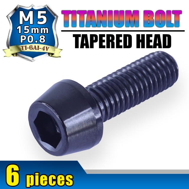 M5×15 P0.8 チタンボルト 6本セット 5mm 15mm ピッチ0.8 ブラック テーパー ボルト バイク 車 自転車 自動車 ロードバイク 軽量化 マウンテンバイク ネジ 競技車 レース 64チタン スクリーン カウル ウェルナット スクリーンボルト