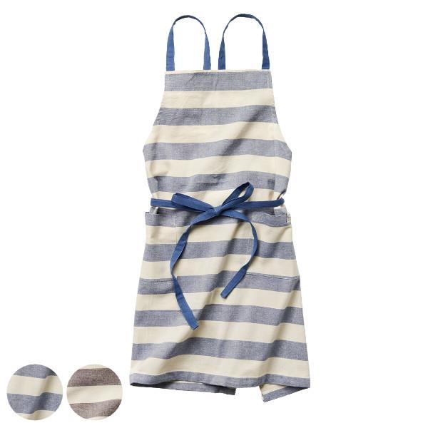 エプロン ボーダー柄 アンバー 綿100% ( キッチンエプロン 台所エプロン カフェエプロン クロスエプロン ポケット付き おしゃれ 大人用 綿 コットン 100% キッチン用品 )