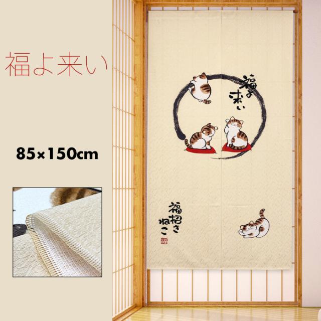 のれん 暖簾 おしゃれ カーテン 間仕切り 仕切りカーテン 目隠し 和風 和柄 和モダン 和風モダン 和風暖簾 日本 メッセージ付き 猫 ねこ にゃんこ 招き猫 招福 福よ来い 85×150cm 日本製 国産